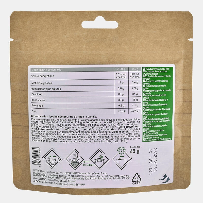 Dessert Lyophilisé – Riz Au Lait à La Vanille – 45 G