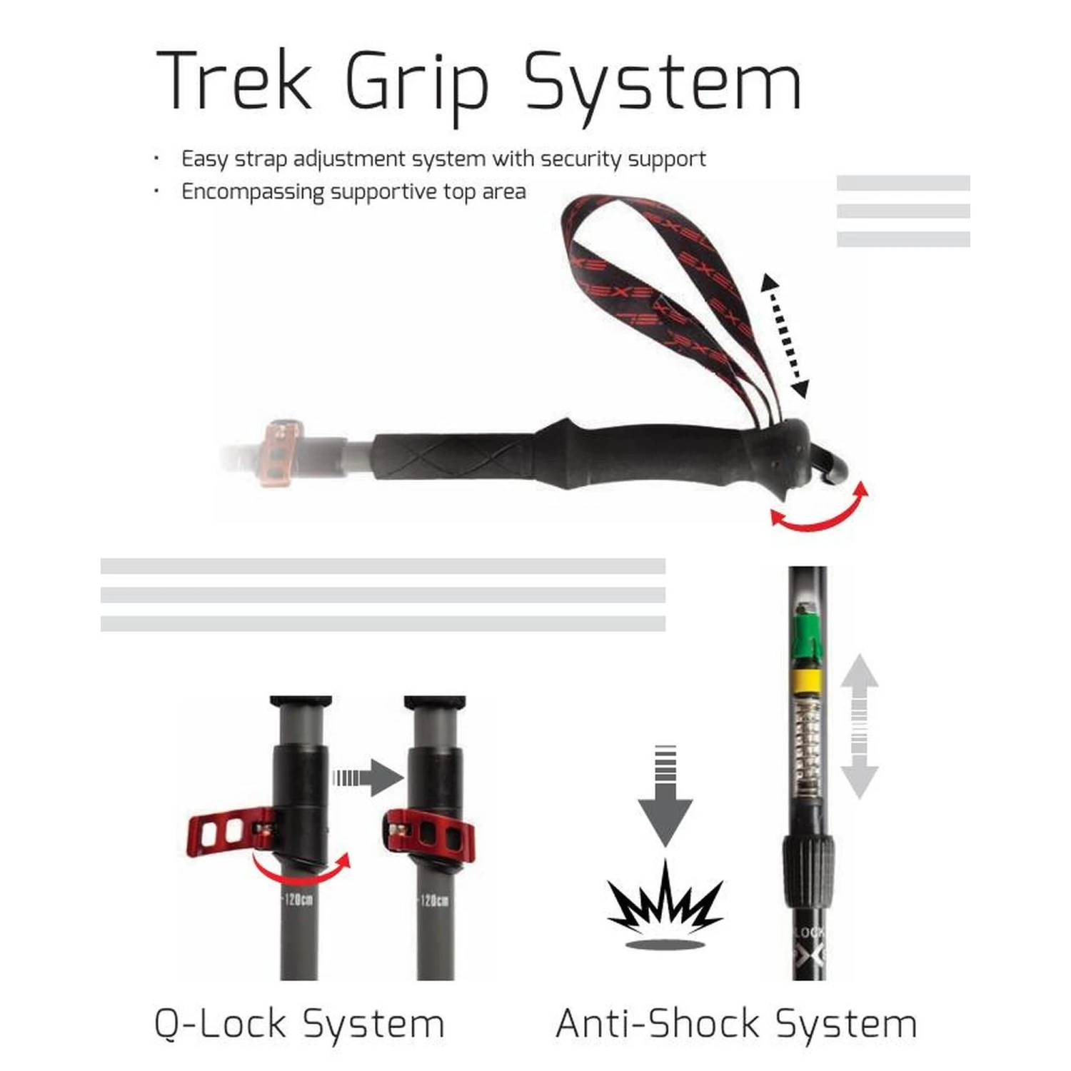 Batôns de randonnée rétractable, 100 % carbone sur le brin supérieur et aluminium 7075 sur les deux brins inferieurs. réglages avec bagues. systeme anti choc