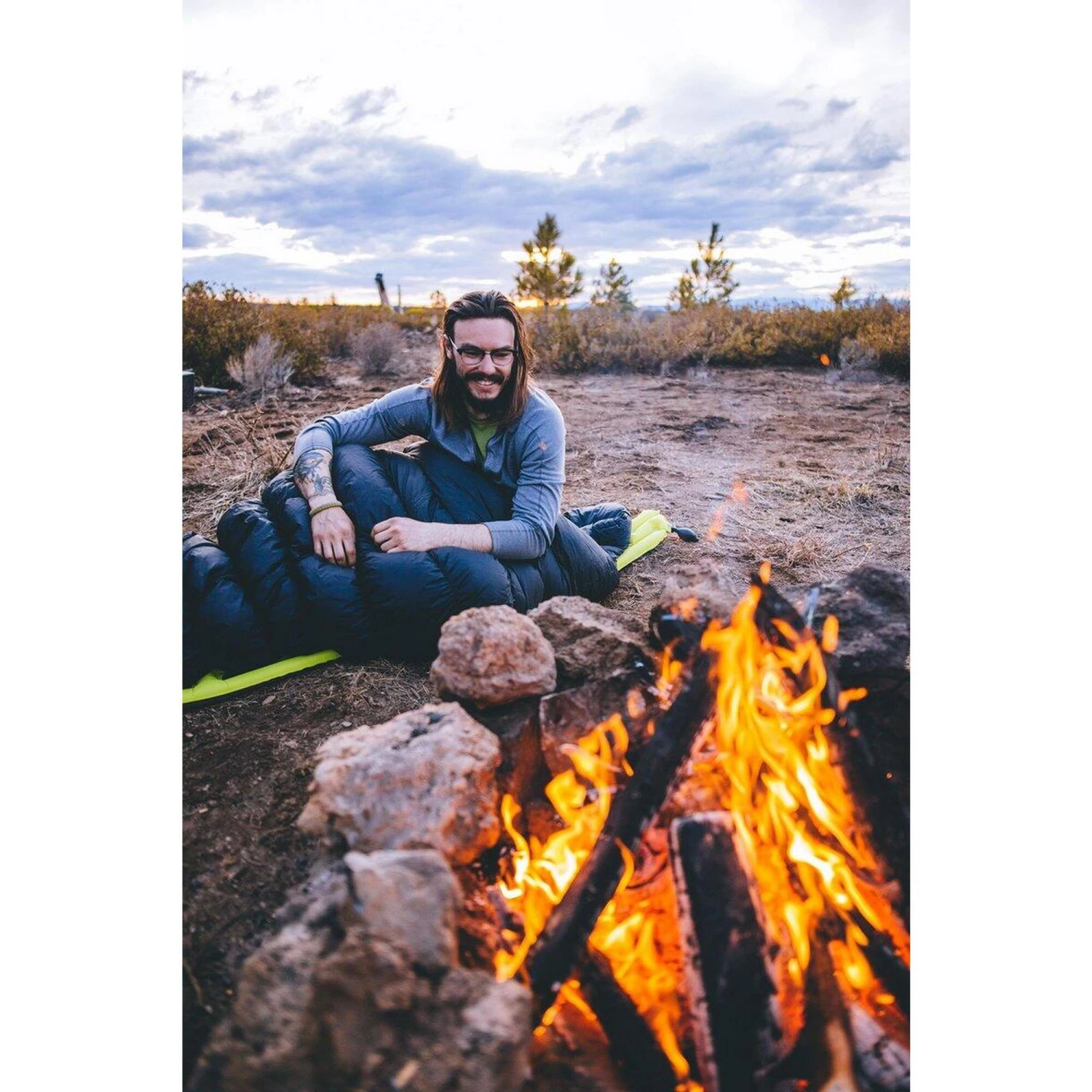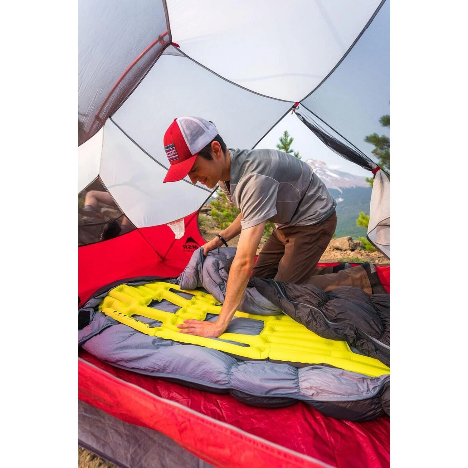Matelas de camping à glisser dans le sac de couchage. Découpe corporelle pour limiter le poids,
