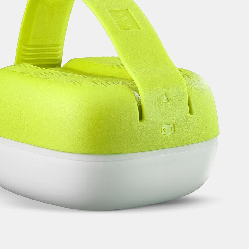 – en dĂ©tachant la languette pour la fixer sur le 2 Ăšme point d’accroche et obtenir une petite boucle. Vous pourrez l’accrocher sur une branche, sur un crochet de tente (possibilitĂ© de le faire entrer dans le trou disponible sur la languette) ou la poser sur le cĂŽtĂ© de votre table pour orienter l’Ă©clairage.