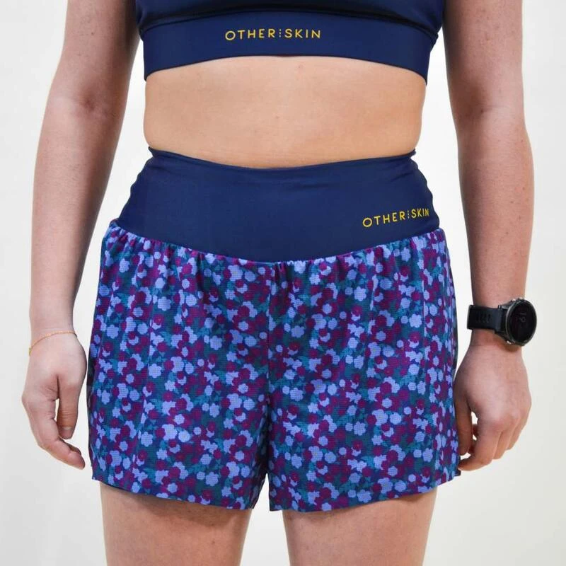 Ce short bleu s’adapte aux femmes avec féminité et praticité : taille haute, 2 poches, cordon de serrage, bandes anti-frottements. Performant et responsable : conçu au Portugal, tissu italien recyclé.