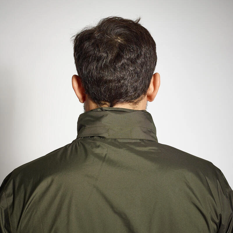 Conçue pour la chasse en plaine et toutes les activités de plein air par temps pluvieux.Veste imperméable, légère avec un carnier.