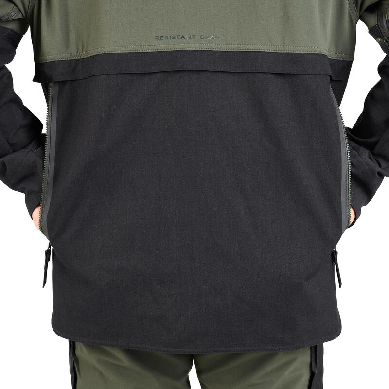 Cette veste dispose de 2 poches extérieures, qui sont notamment zippées (avec curseur bloquant) pour plus de sécurité, et plaquées pour que la végétation ne passe pas. A l’intérieur de chacune d’elles, 5 cartouches peuvent prendre place, donc vous pouvez emporter 10 munitions dans ces poches. A noter aussi 2 autres poches zippées verticales. Enfin, un carnier arrière s’ouvre grâce à 3 zips pour transporter le gibier prélevé. Il s’ouvre aussi par ces 3 côtés de façon à faciliter son nettoyage.